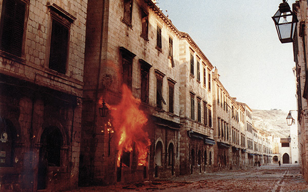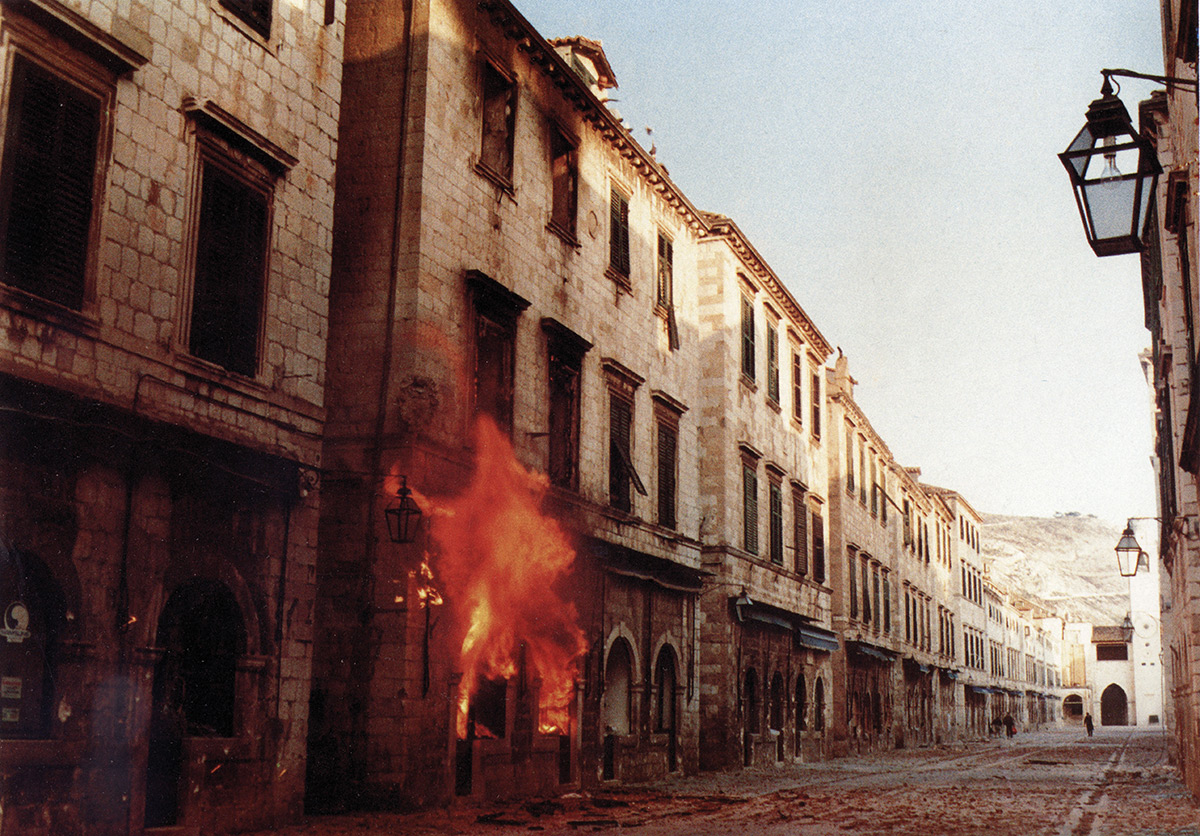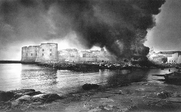 La cité médiévale de Dubrovnik, inscrite au Patrimoine mondial de l'humanité, est assiégée et bombardée tant depuis les hauteurs avoisinantes que depuis la mer, d'où la pilonne la marine « yougoslave », qui a mis en place un blocus naval, visant à empêcher la Croatie de se procurer des armes, vitales pour son autodéfense. Le siège de la ville débuté en octobre 1991 ne prendra fin qu'en mai 1992, lorsqu'il sera brisé par les forces croates. Durant ces huit mois, moins de mille défenseurs croates ont fait face à 30 000 soldats ennemis, appuyés par 120 pièces d'artillerie et 150 blindés. En tout, 428 soldats et policiers croates et 92 civils (y compris l'auteur de ce cliché, le photographe Pavo Urban) ont trouvé la mort à Dubrovnik et à ses alentours, tandis que 30 000 réfugiés ont dû fuir les combats.