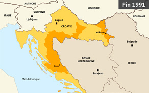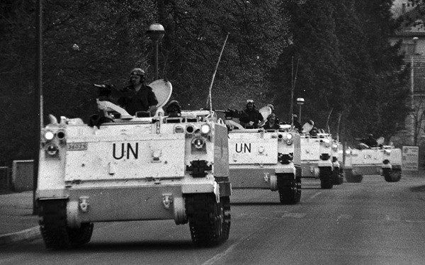 Établie par la résolution 743 du Conseil de sécurité de l'ONU, la mission de maintien de la paix de la Force de protection des Nations unies (FORPRONU) se déploie dans les territoires occupés en Croatie d'où la plupart des Croates ont été chassés. Elle a pour mandat de veiller à ce que les trois Zones protégées par les Nations unies en Croatie (ZPNU) soient démilitarisées. Si elle parviendra à y faire respecter le cessez-le-feu, elle ne parviendra pas à les démilitariser ni à y assurer le retour des 250 000 réfugiés croates. Tandis que les casques bleus prennent position en Croatie, la Bosnie-Herzégovine voisine s'enfonce à son tour dans la guerre. Les séparatistes serbes y assiègent la capitale, Sarajevo, et conquièrent bientôt deux tiers du pays, rendant plus difficile encore la situation en Croatie.