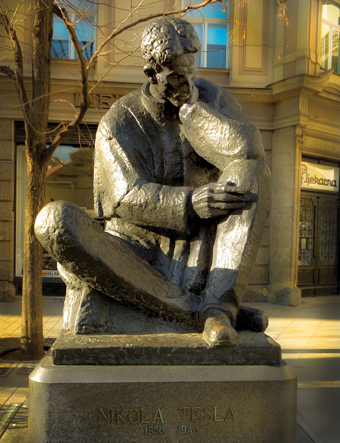 À l'occasion du 150e anniversaire de la naissance du grand inventeur, physicien et ingénieur, l'UNESCO a proclamé 2006 « année Nikola Tesla ». Né en Croatie et mort aux États-Unis où il a passé la seconde moitié de sa vie, il a été l'artisan du développement des réseaux en courant alternatif. On lui doit, entre autres, le moteur à induction à courant alternatif qui équipe encore la plupart des appareils électriques et ménagers. Père de l'hydroélectricité, il construisit en 1895 la première centrale hydroélectrique sur les chutes du Niagara. La même année, la ville croate de Šibenik est devenue la première ville d'Europe éclairée grâce à l'hydroélectricité. (Photo : statue de Nikola Tesla au centre de Zagreb, œuvre du grand sculpteur croate Ivan Meštrović).